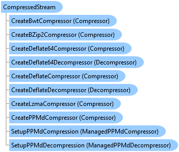 ![]() | CompressedStream Constructor | Overloaded. Pass-through stream that applies compression and decompression to an inner stream. |