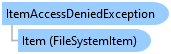 ![]() | ItemAccessDeniedException Constructor | Overloaded. TODODOC Exception that is thrown when performing an operation on a Xceed.FileSystem.FileSystemItem object that cannot be accessed. The InnerException property will usually provide more details on the cause. |